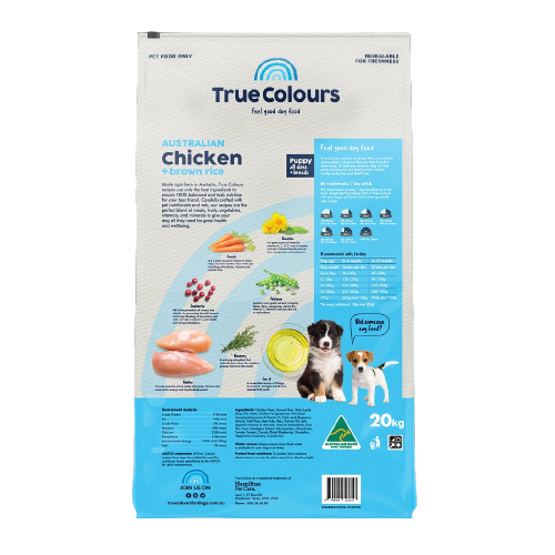 True Colours Puppy Chicken & Brown Rice 20kg *Instore Pick Up or Local Delivery Only*